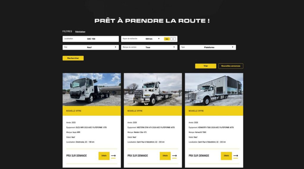 Conçue pour répondre aux besoins concrets des professionnels du dépannage, cette vitrine centralisée est accessible gratuitement et propose une interface moderne et intuitive. Elle intègre plusieurs filtres avancés permettant de personnaliser la recherche selon différents critères, incluant le type d’équipement, la marque de camion et la position géographique de l’utilisateur.