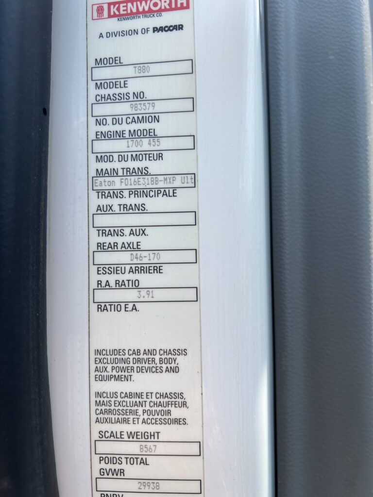 2016 KENWORTH T880 WITH 40TB CARRIER
